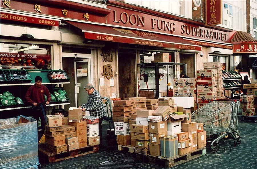 London LeicaMeet 2016 ; I wandered into Chinatown -- light very poor so I used full aperture on the 50mm f2 Summicron - I scanned a colour print. I had only 64 ASA Rated 'Tudor' ( Fuji) 100 film loaded outdated 2005.