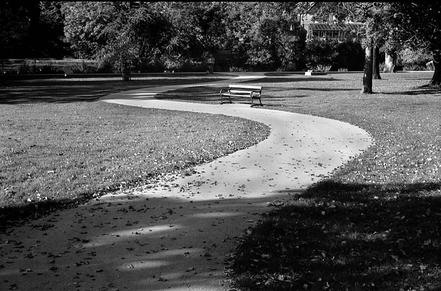 Visited a local Park to get some Autumn Light -- nobody came by to sit on the seat -- hence the TITLE !! 2007 outdated Fuji Across 100 rated 80 ASA processed in Home-Made ID11 formula 1+1