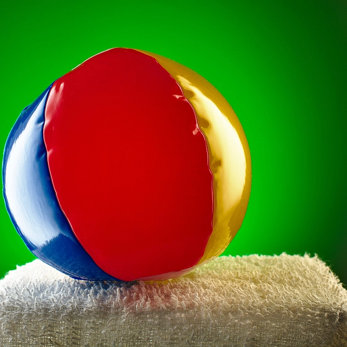 Miniature beach ball on towel.