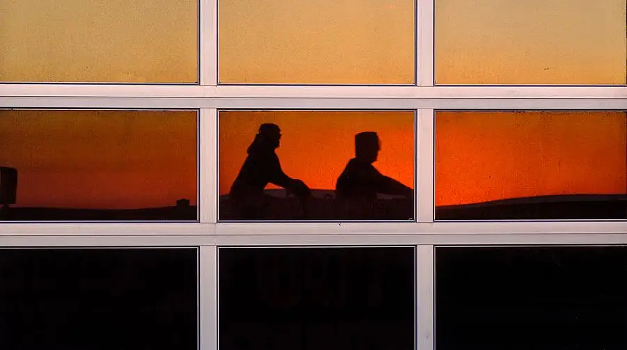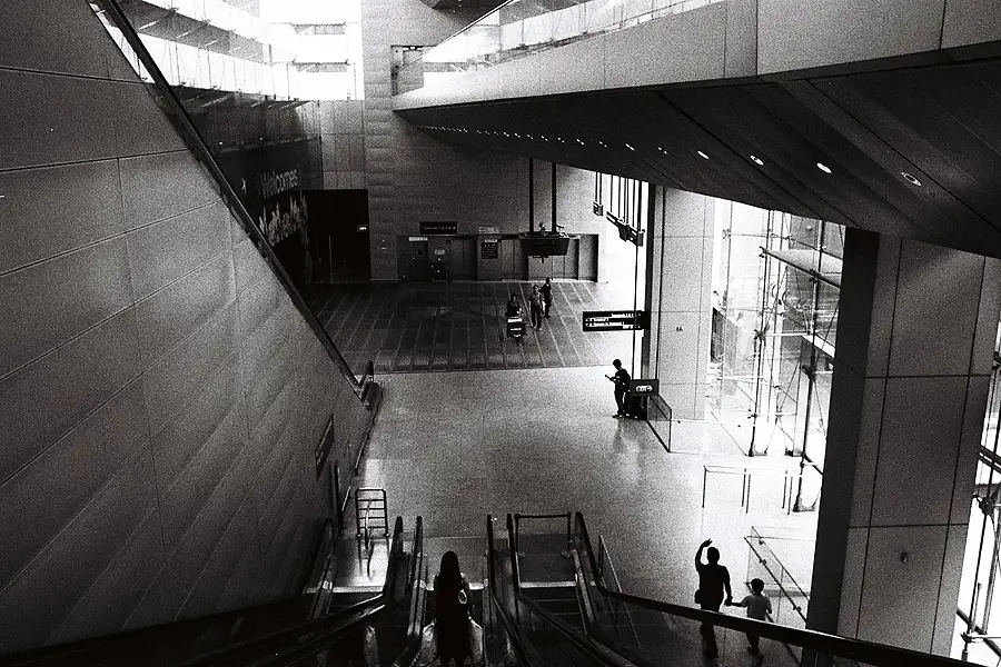 Down an airport escalator