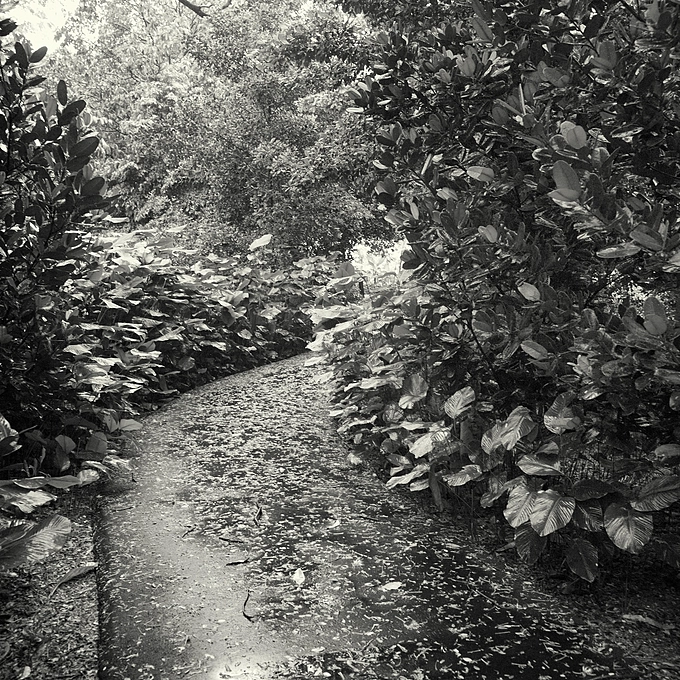 Rain-drench footpath in the garden