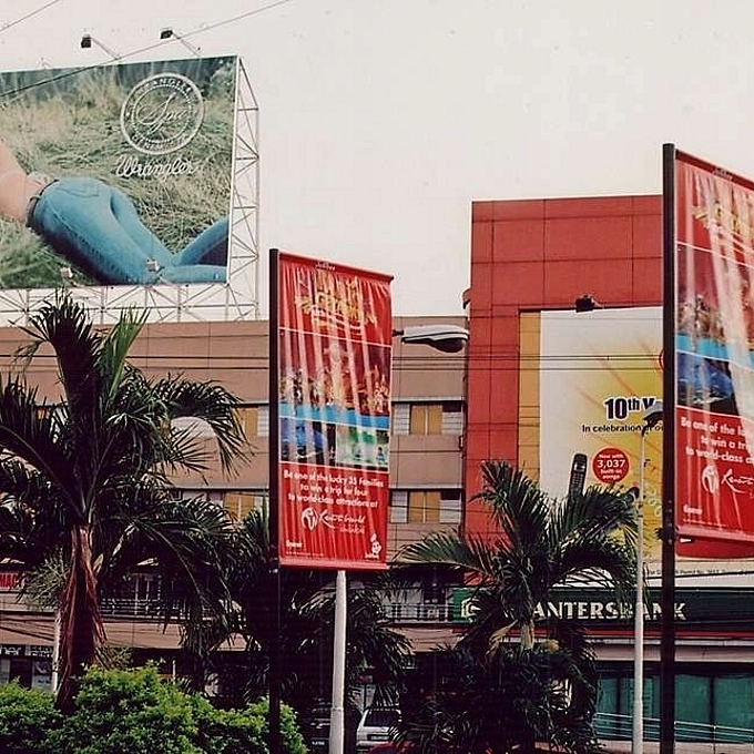 Taken from the window of a moving Toyota, Cebu City, Philippines -- they use images of Girls VERY LARGE but teh products they are advertising are very SMALL ! I used my 'Free Gift' 1996 PENTAX MZ-5