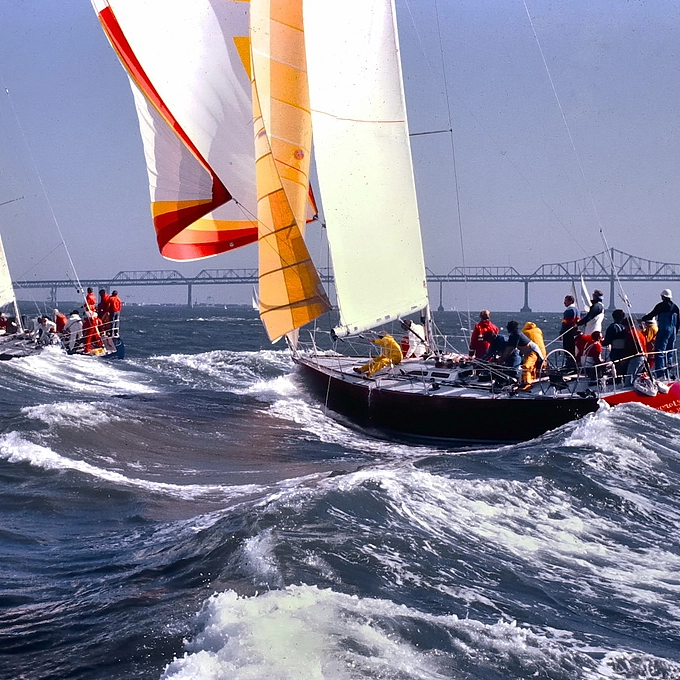 I rescanned the Ektachrome using a lightbox and NEX-5T with micro-Nikkor 55. Set for Vivid color. PP in SIlkypix Studio 4 for better more natural colors than previous posting. I shot this from my C&C 3/4T raceboat. No one seemed to mind that I was so close to them. My son steered while I filmed.