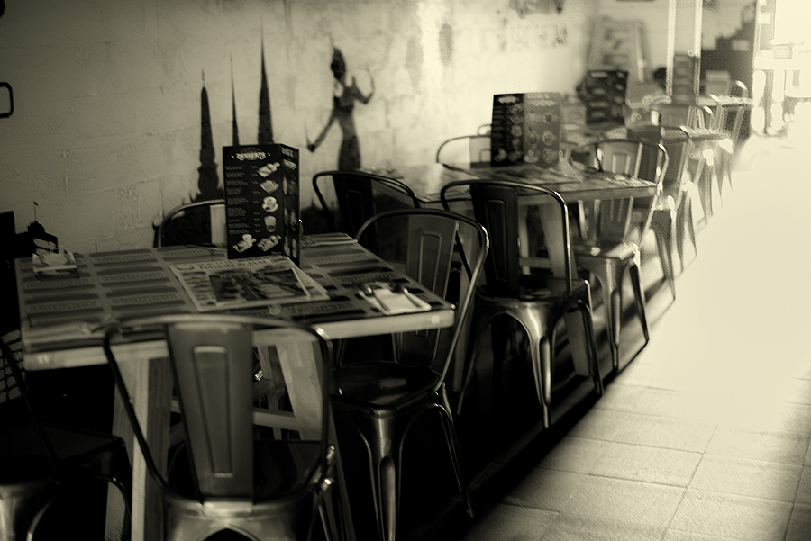 The 50 Summilux at 1.4, focused around 1/3 into the scene, gives a soft and faded look. I was hoping it would suit the strong glow of the morning sun streaming in. The dancing girl decorates the otherwise rather grumpy wall.