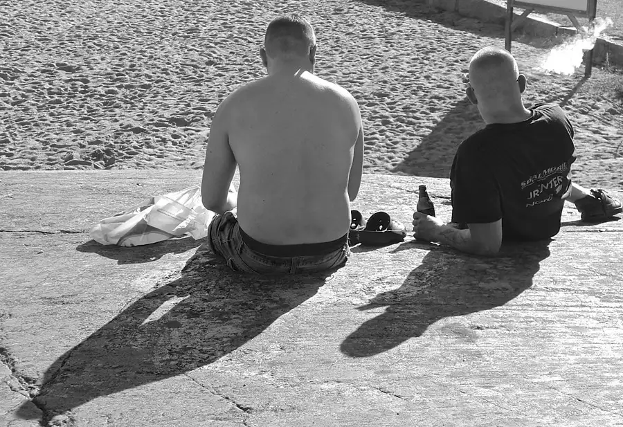 Guys relaxing on the rocks