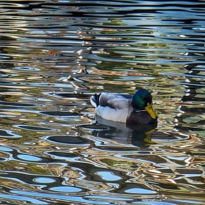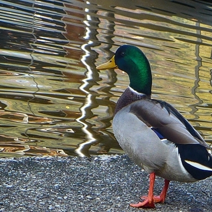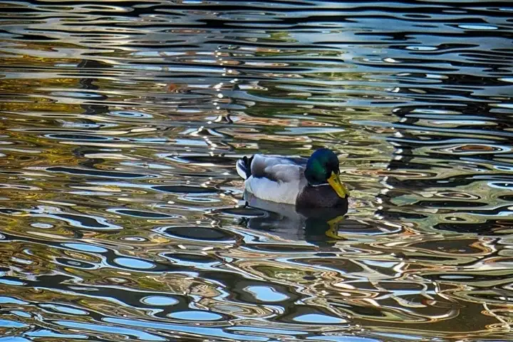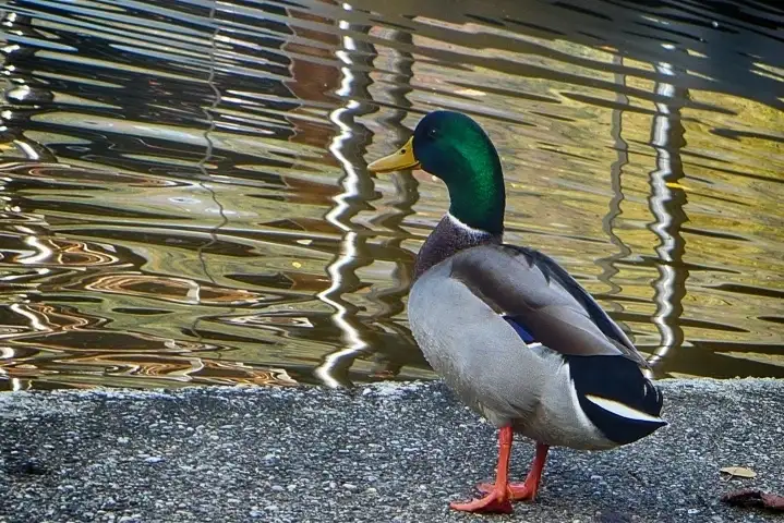 Duck looking at modern art by nature