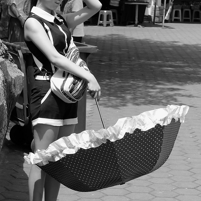 Girl with umbrella posing.