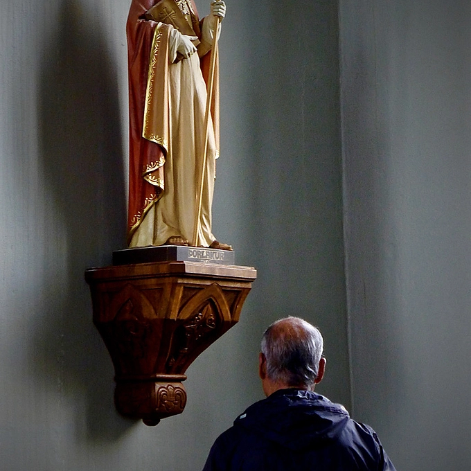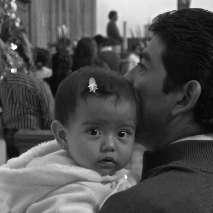 Father and child in a church in Mexico City