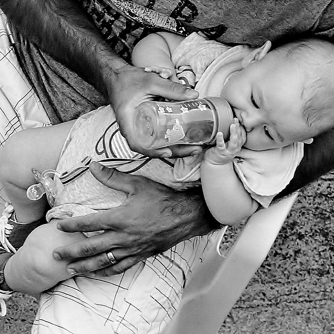 The hands of father