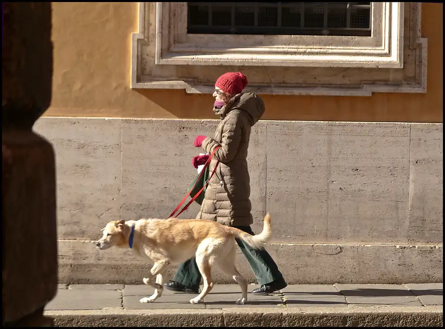 Walking with the dog on a sunny day