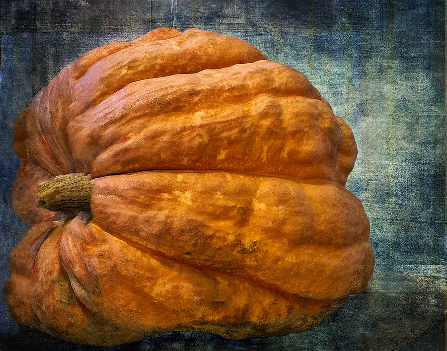 This pumpkin weighed 1,593 lbs, and placed second (for giant pumpkins) at the 2011 Topsfield Fair in Massachusetts. It was shown in a mundane, grey cage, and I thought it deserved a better setting - therefore, the background has been heavily manipulated. The pumpkin, however, is depicted in all its bumpy, gnarly, colorful reality.