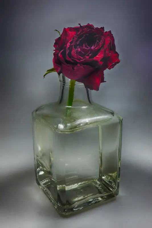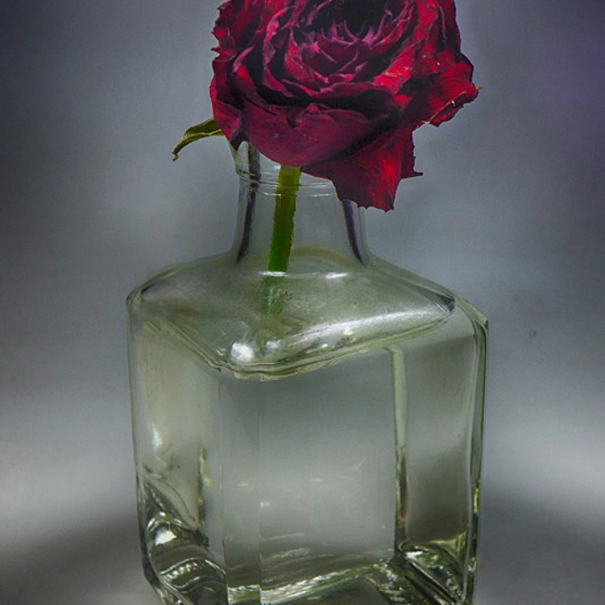 Red rose in glass fading away