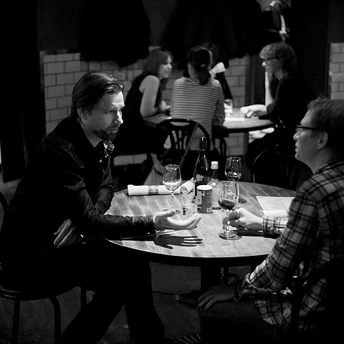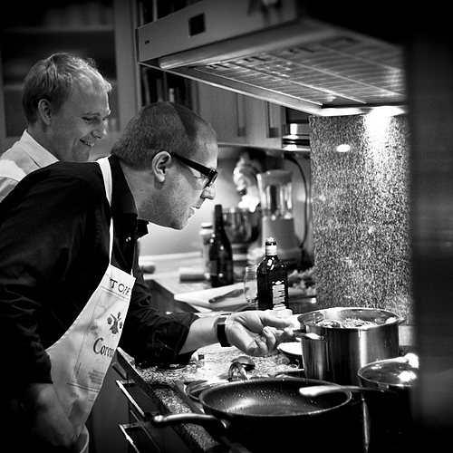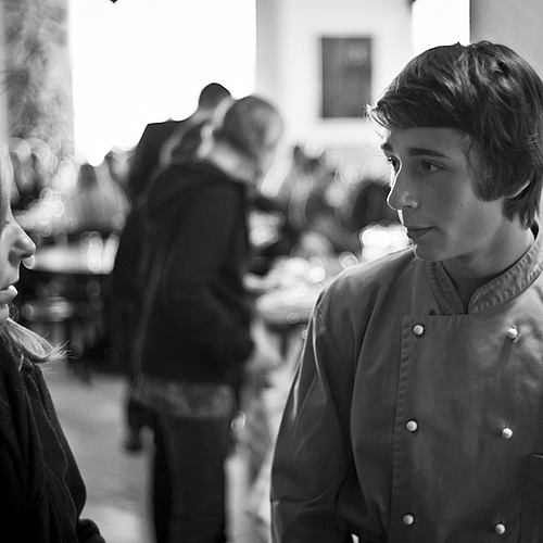 A traditional Christmas Pantomime 'Cinderella'-- it was a photocall for local newspapers. The two 'Ugly Sisters' and 'Buttons' with some pies.... I used Fuji Superia 400 film with a blue conversion filter held over the lens, no flash.