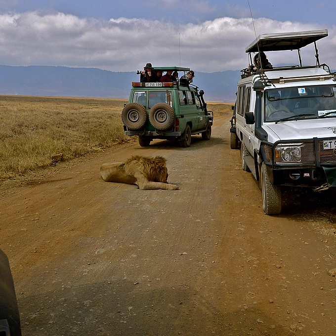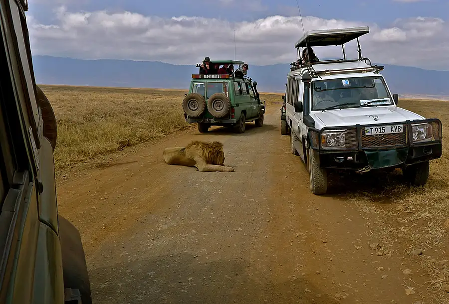 Lion Between Three Cars