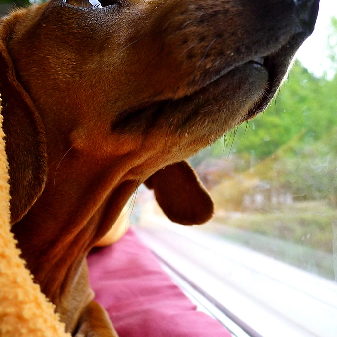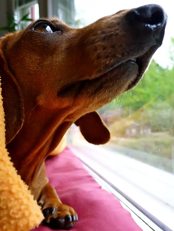 Daschund by the window