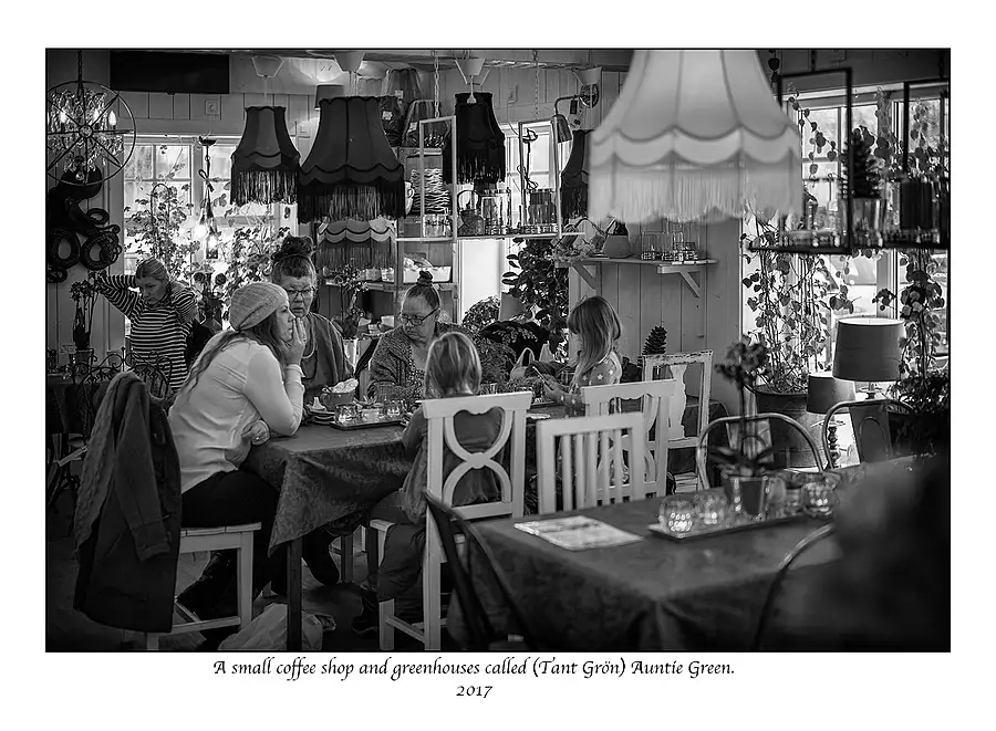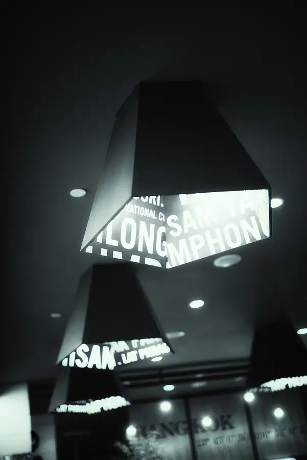 Sitting under a lamp in a coffee shop