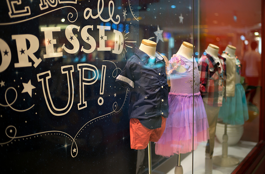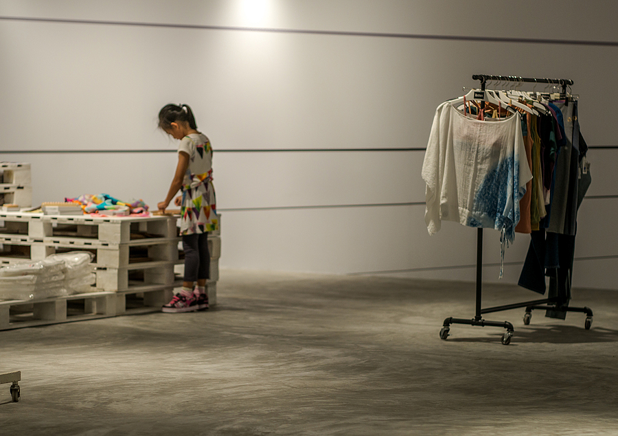 Little girl in a make-shift store