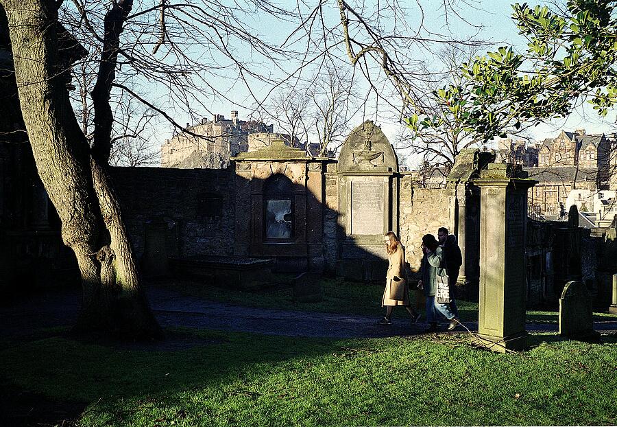 EDINBURGH : Greyfriars Churchyard with Castle in backgroung