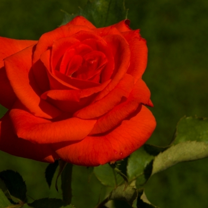 Red rose on green