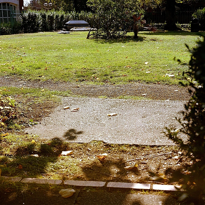 My 'Gift' ROLLEIFLEX T via Sons of my Deceased Great Old Friend and a roll of his 1998 dated Fuji REALA rated 50 ASA and home-processed in C41 - An Old Burial Ground in Brentwood