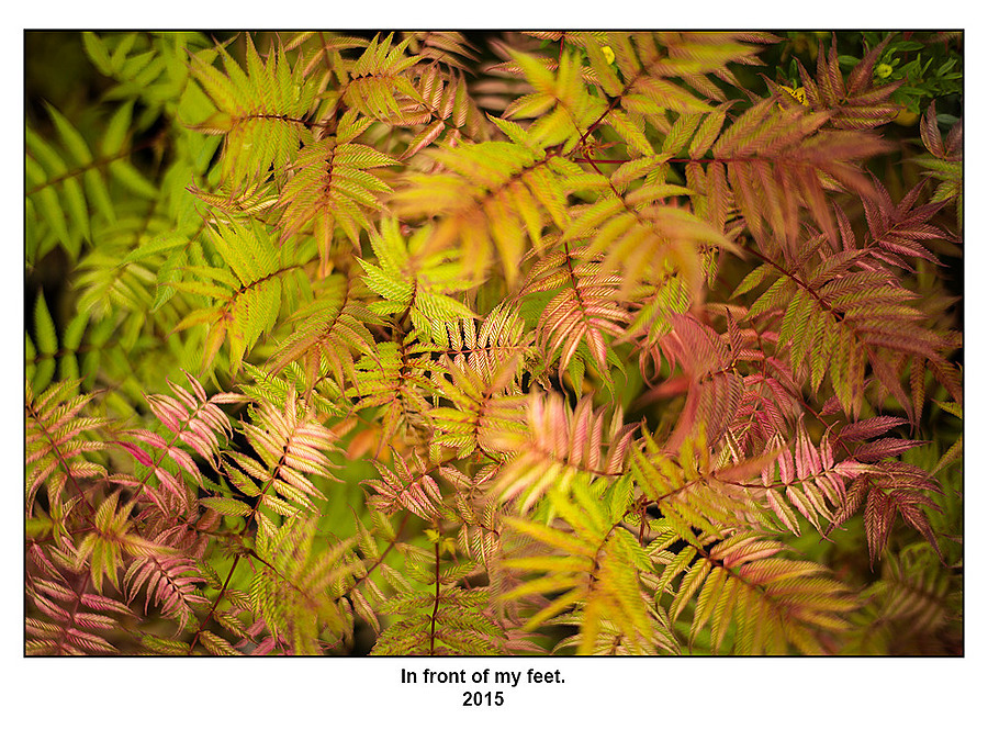 In front of my feet.
