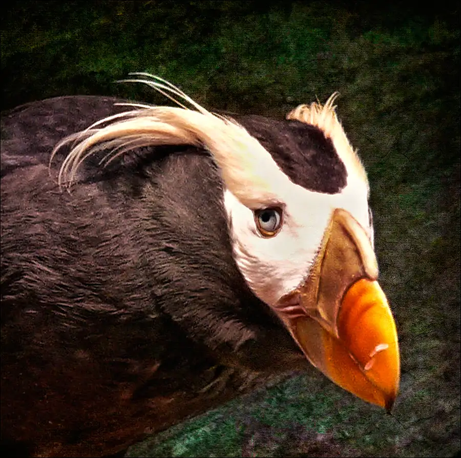 I should have explained when I posted - this is a shore bird, seen on the coast of the Pacific Northwest. Called a "tufted puffin", I found her in the Oregon Coast Aquarium - and she does not look happy....