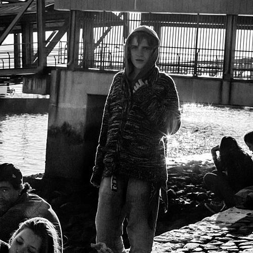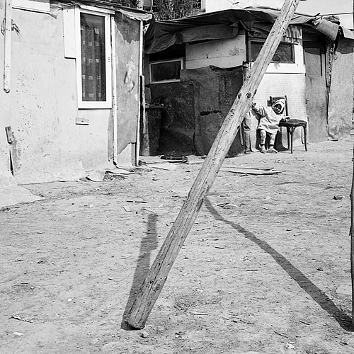 This was taken today at Deerfield Beach, Fl. I had finished shooting for the day and was walking back to the beach house when the blimp caught my eye. Luckily I still had the camera in my hand - Digilux 1. A few seconds too late and the blimp would have cleared the building. I took some follow up shots but none of them was as good. Strangely the life guard was not noticed consciously, but my subconcious knew.