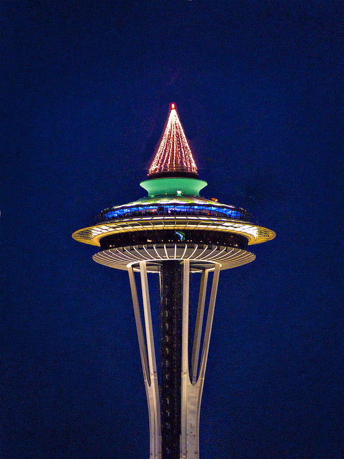 The Space Needle in Seattle, Washington, decked out for the season.