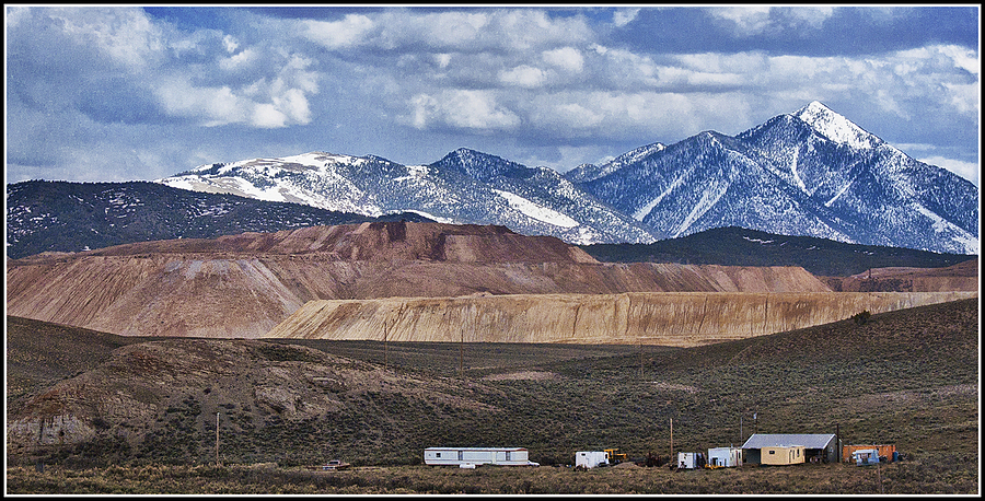 Near Ely, Nevada, the tailings from open-pit copper mining create new foothills at the base of the mountains. These tailings are about five miles from the buildings seen in the foreground.