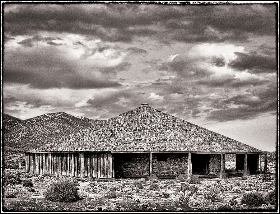 Round barn, Nevada high desert BW