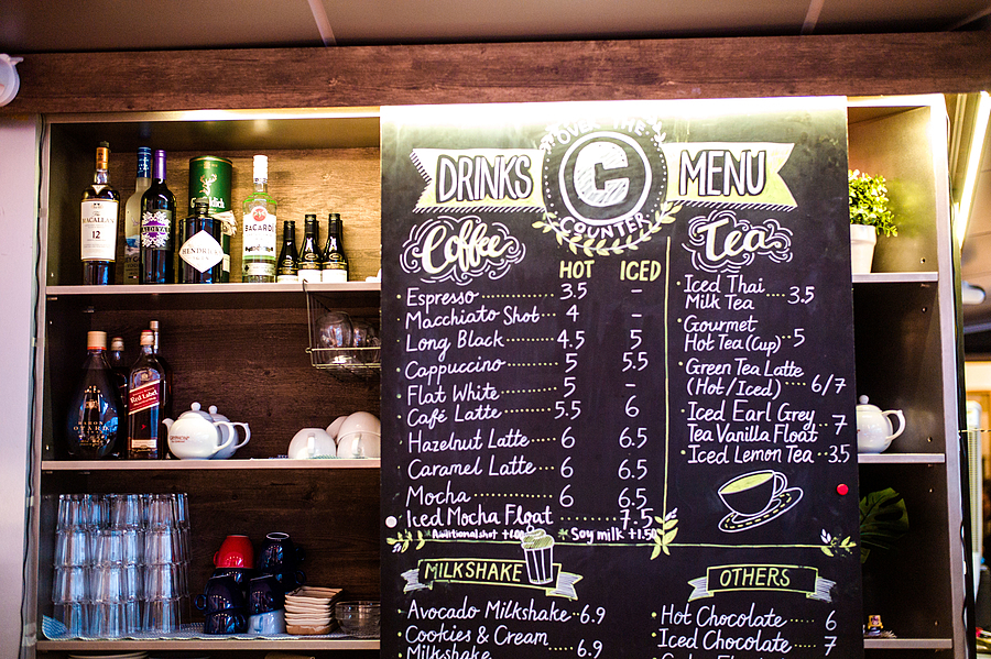 Library cafe menu board