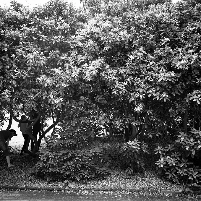 JUNE 11 - Children playing in the rhododendrons