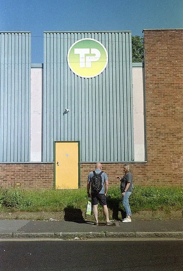 I was testing the 1934 Leica II with the 1936 Summar lens on Colour, outdated Truprint (3M) 200 film I rated at 100ASA. I saw these colours in our High Street. It is a scan from a 'Trade-processed'print.