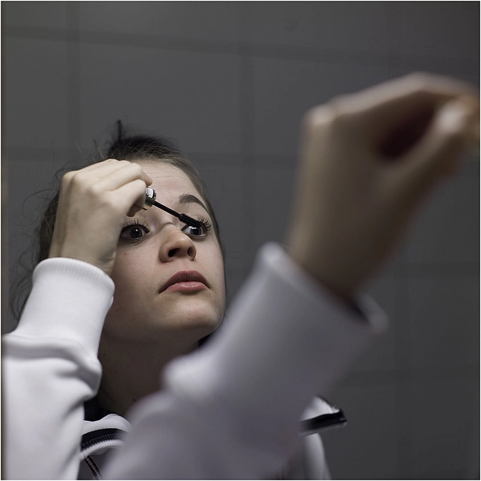 Putting on makeup