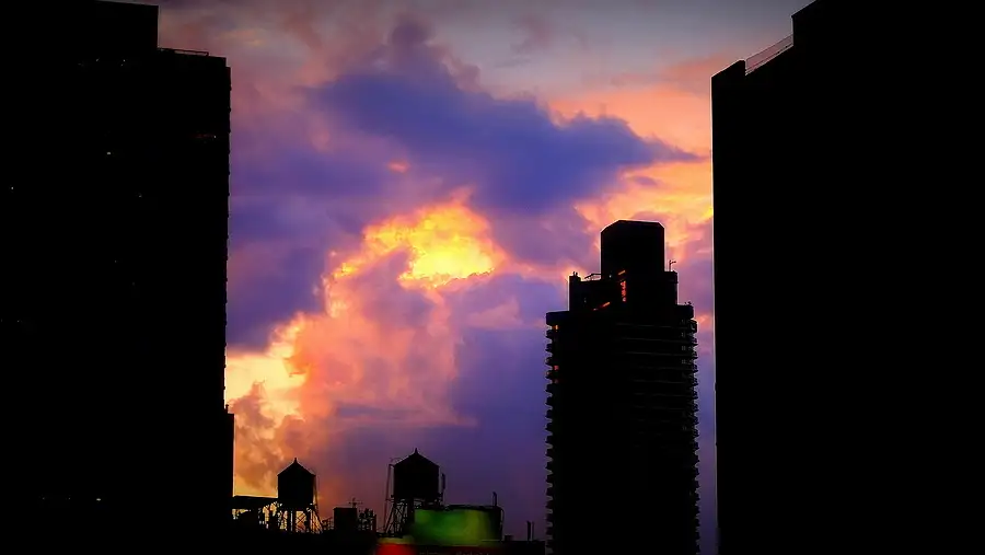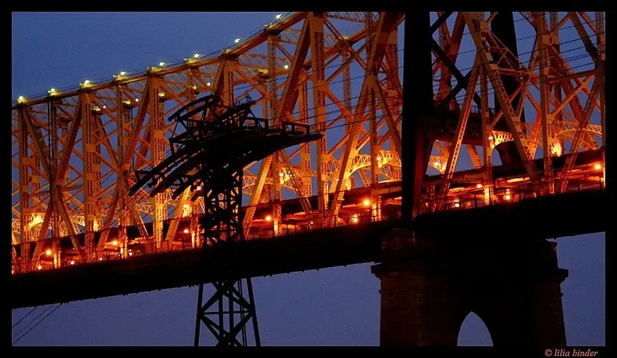 The Queensborough Bridge is occasionally lit in striking colors. Beautiful against the evening sky.