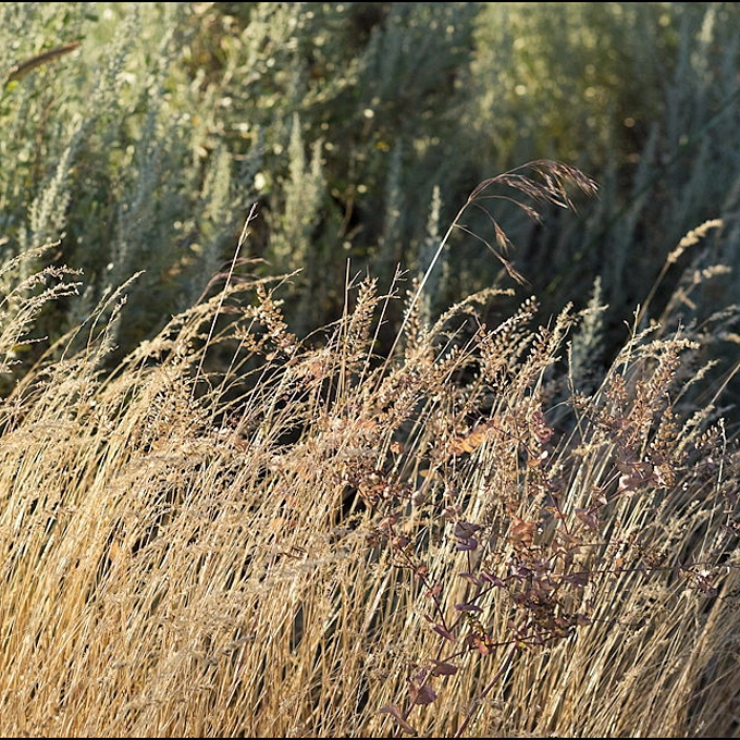 My cats think these grass seeds are tasty treats. The green is sagebrush.