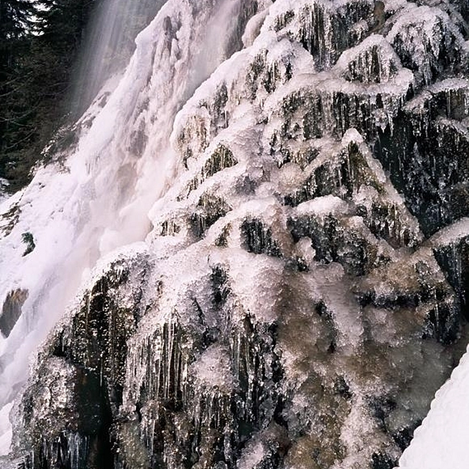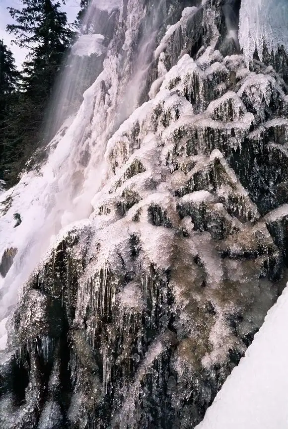 Frozen Waterfall Detail. Source Falls. Washington Cascades.