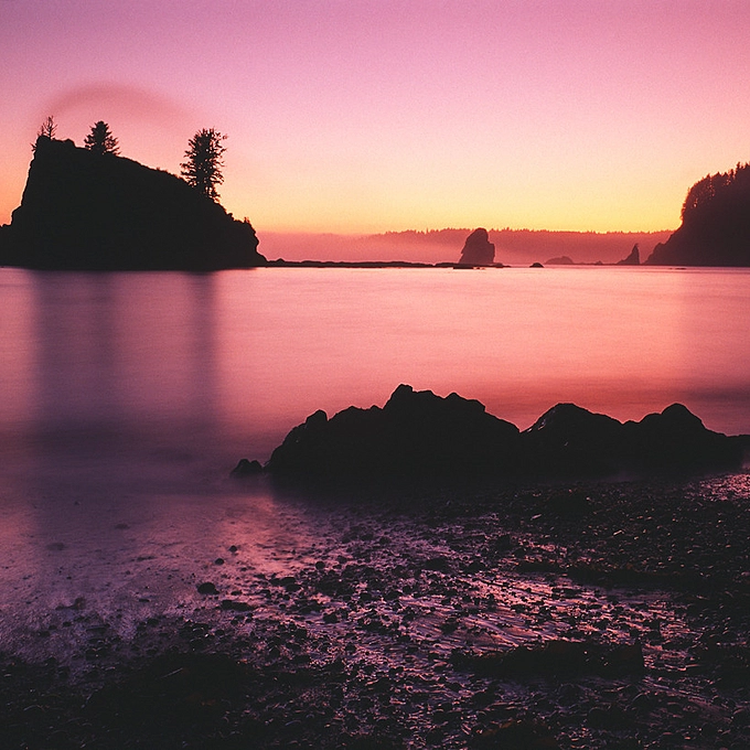 Scott's Bluff Beach at Sunset. Olympic Nat. Park, WA