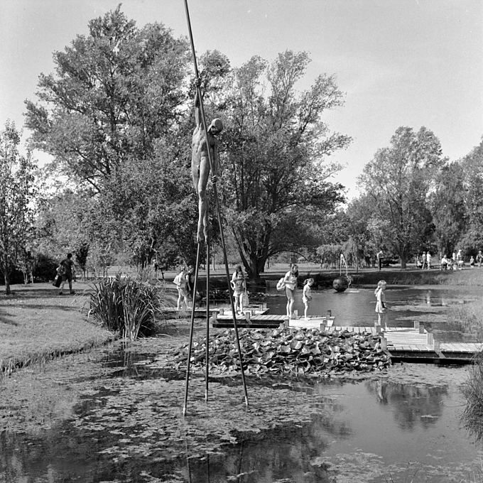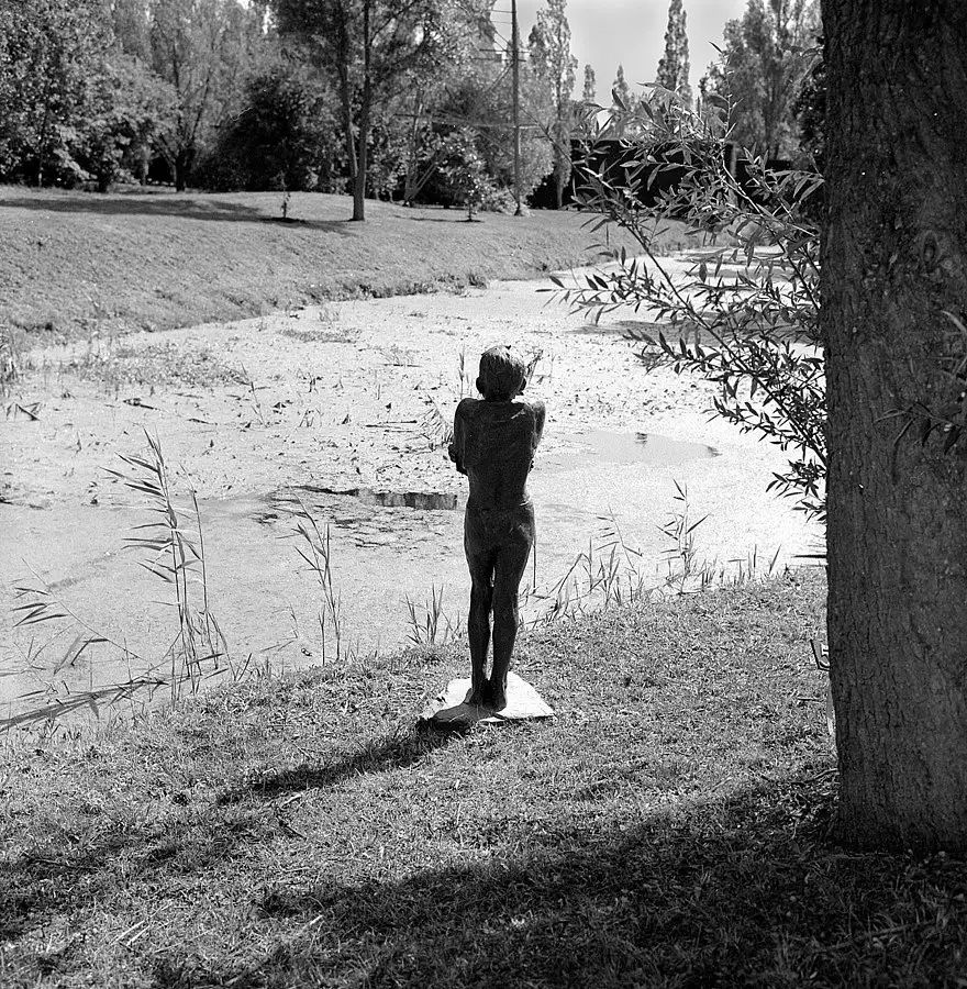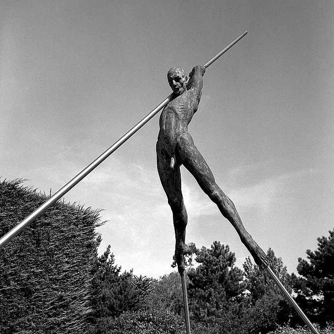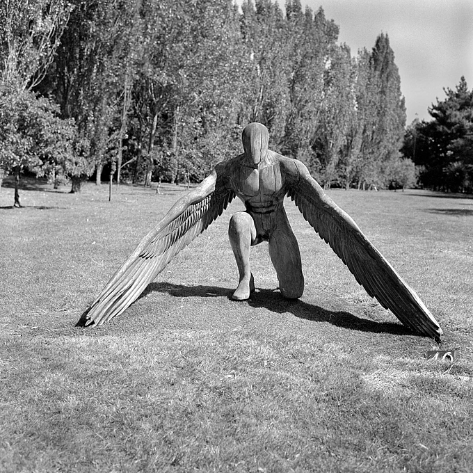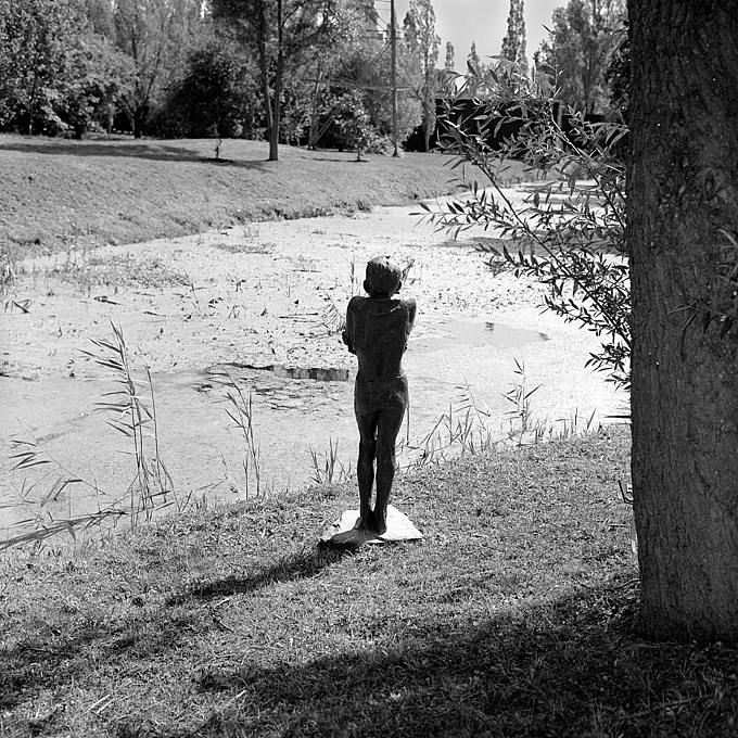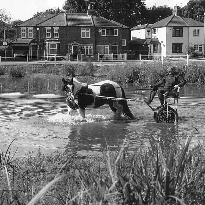 Out with my 1969 ROLLEIFLEX 3.5F Planar as it was sunny I got this bloke with his horse in the Pond near our Town Centre -- I had 1984 outdated Ilford Pan F loaded but I over-developed the film and negs were contrasty, but luckily I had some Ilfobrom Glossy Grade 1 -- must be over 40 year old and printed it on that and it came out well !
