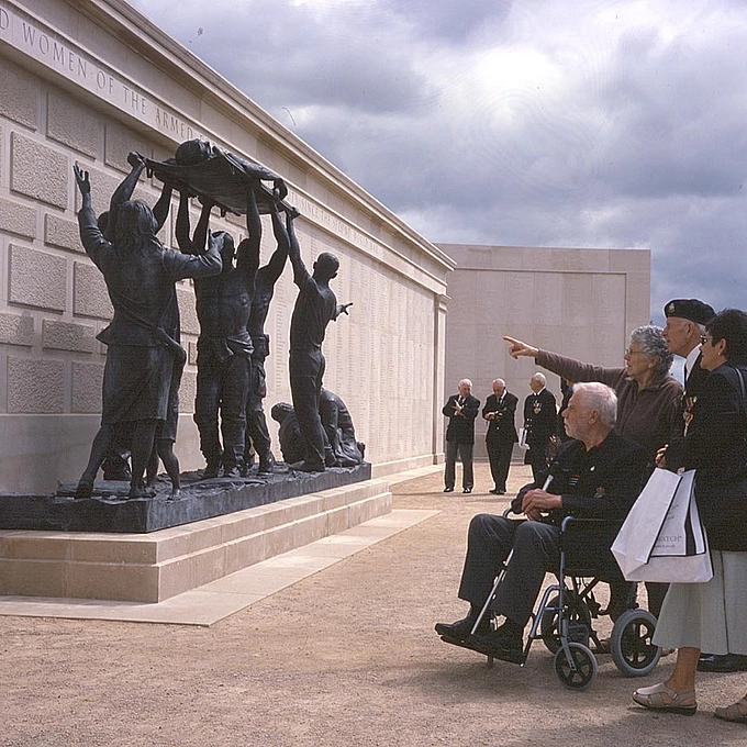Some years ago I went to the National Arboretum War Memorial with all my 'Veterans' gear' on for the 50th Anniversary of National Service in the UK-- nobody worried that I was a short-term REGULAR Soldier' in the RAMC so I marched with everyone and was presented with my 'Veterans' badge' by an RAF Chief Vice-Marshall ( whom I saluted very smartly!) After the parade we could wander around and I went to see the wall where all the names of Servicemen killed in action are inscribed to find the 21 year old Son o