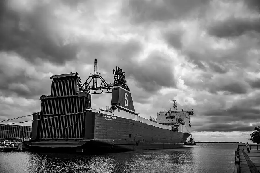 Jeff Bezos' Blue Origin ship to be used for rocket landings docked at Port of Pensacola, Florida.