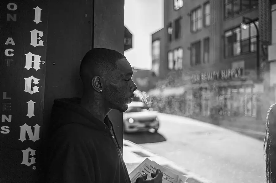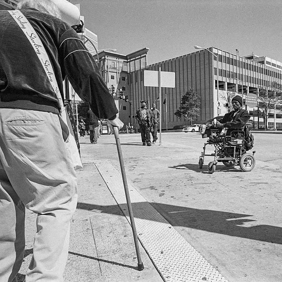 Louis Mendes outside B&H Photo in New York. He's a well known street portrait photographer with his Speed Graphic.