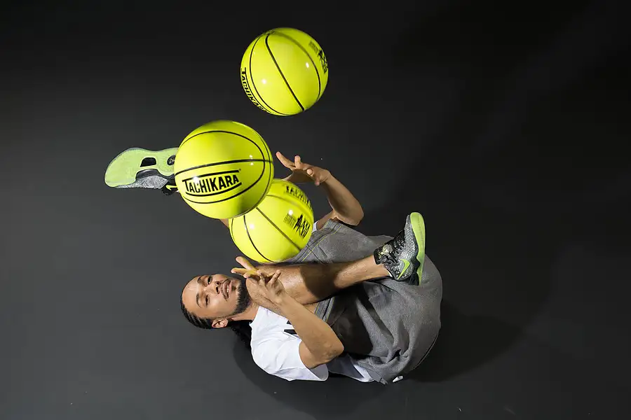 Michael Evolution juggles basketballs