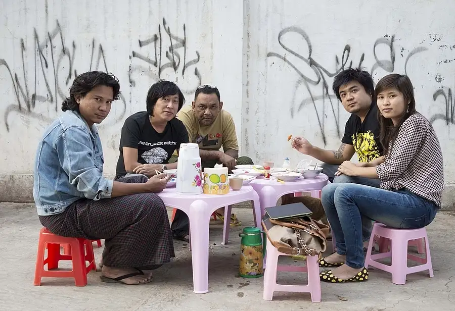 Evening eating at street sides.