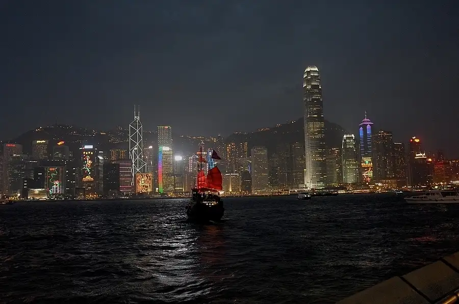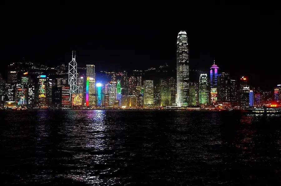 Hong Kong Night Lights across Calm Sea