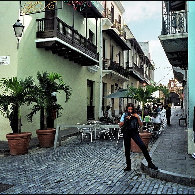 Old San Juan, Puerto Rico. She's a police officer...
