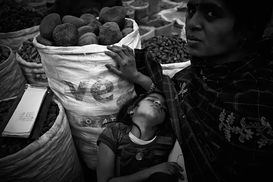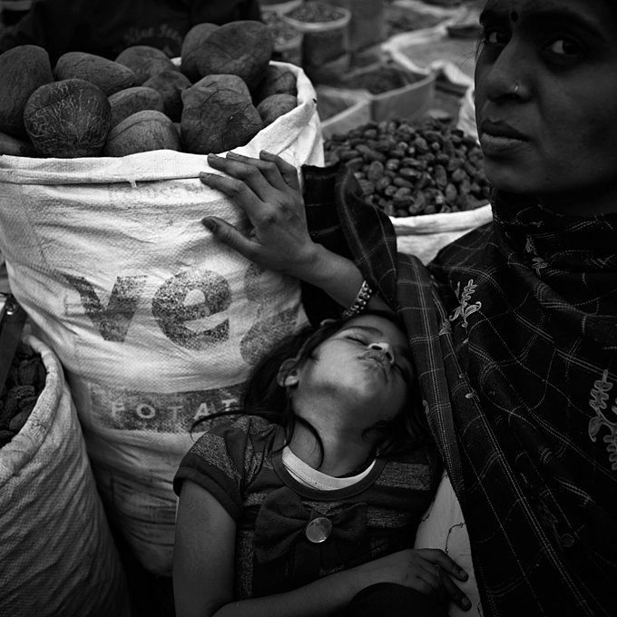 Exhausted child after a long day at the Spice Market Delhi