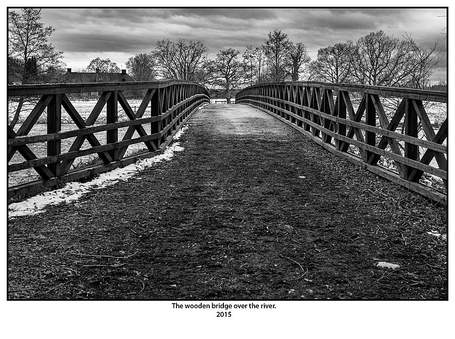 The wooden bridge over the river.