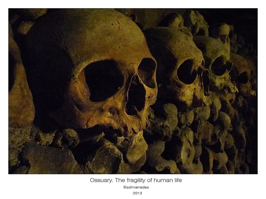 In Ossuary door is an inscription that says: "Stop, this is the might of death"<br />